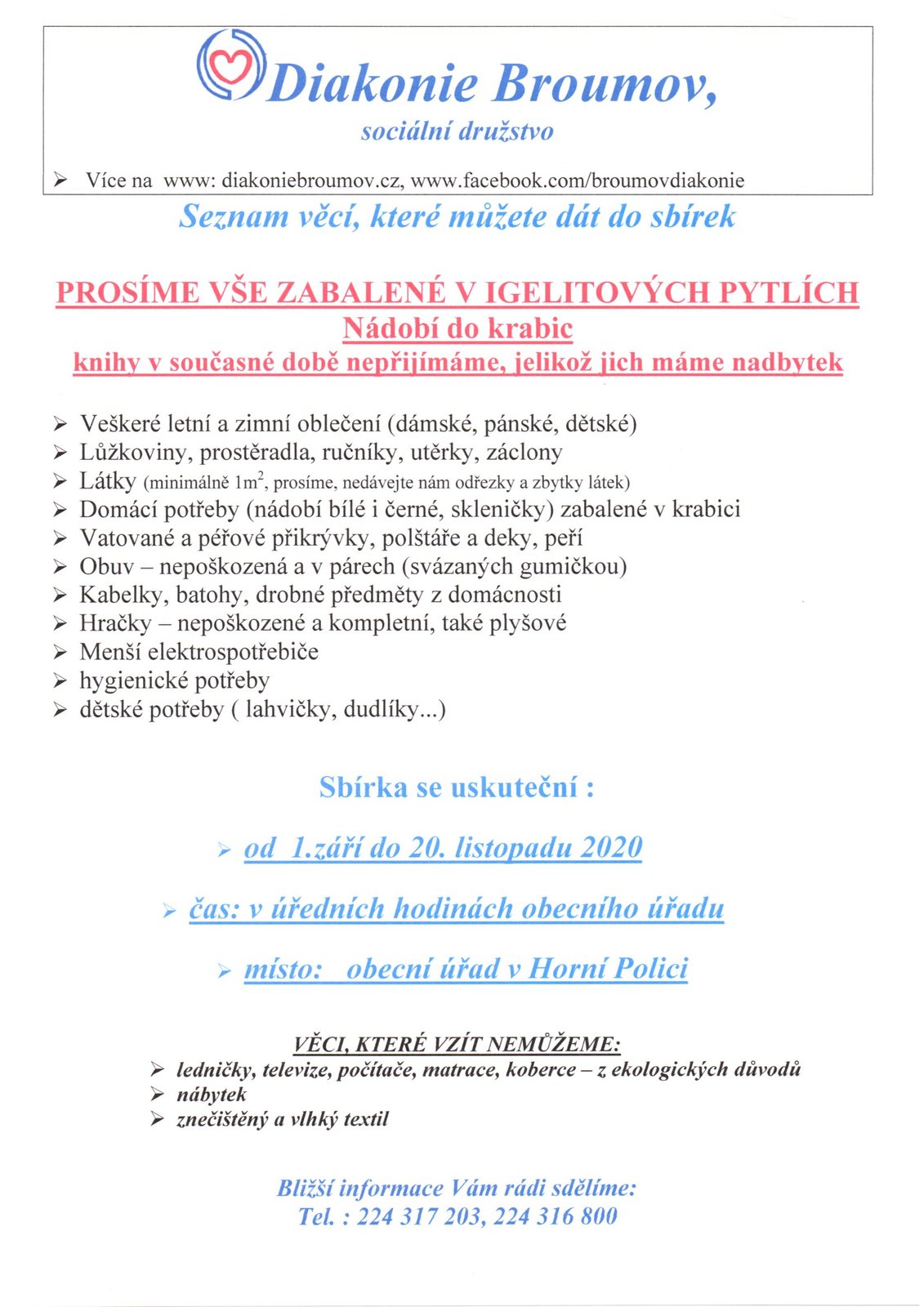 Úvod > O obci > Důležitá upozornění > SBÍRKA OŠACENÍ - Diakonie Broumov 2020