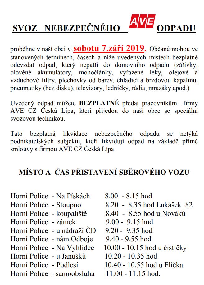 Úvod > O obci > Důležitá upozornění > Svoz nebezpečného a velkoobjemového odpadu